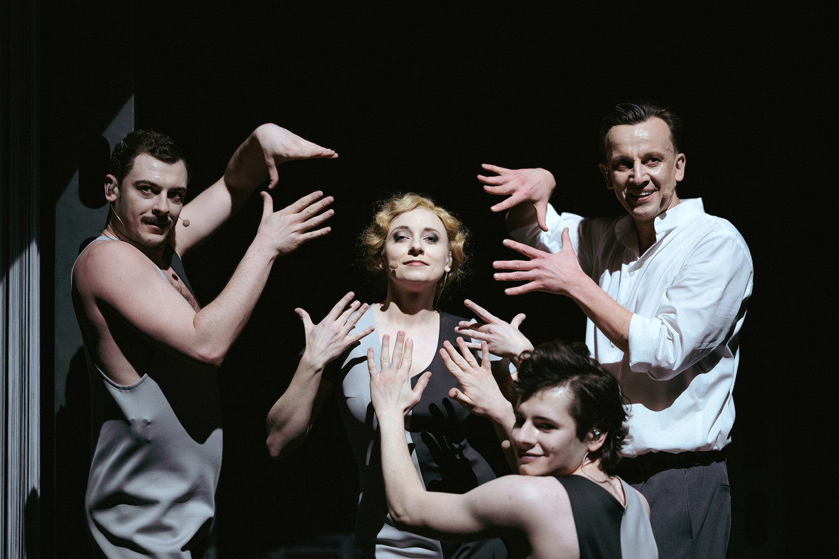 - Zauważ, że w spektaklu występuje czterech aktorów, ale dużo więcej postaci. Co sądzisz o graniu przez aktorów większej ilości ról? Co dzięki temu zostało osiągnięte? W jakim stopniu są one zindywidualizowane, a w jakim podlegają procesom uniformizacji?